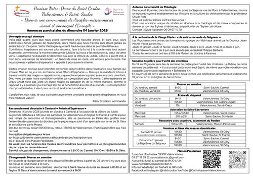 Annonces paroissiales du dimanche 4 janvier 2026