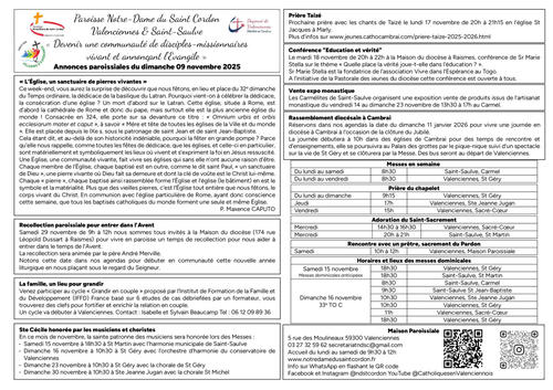Annonces paroissiales du dimanche 09 novembre 2025