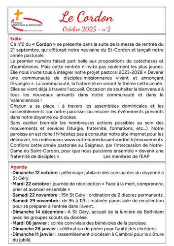 Article publié par response.text()) .then(text => { html = text showLoading = false; })" class="flex justify-center animate-grow-on-hover--small">Claire DUPONT • Publié le Mercredi 01 octobre 2025 • 296 visites Cordon_2_octobre_25 Télécharger 365.6 Ko Télécharger