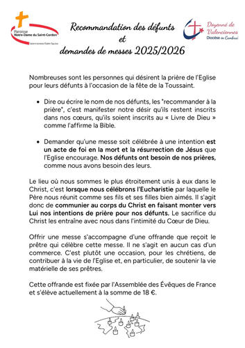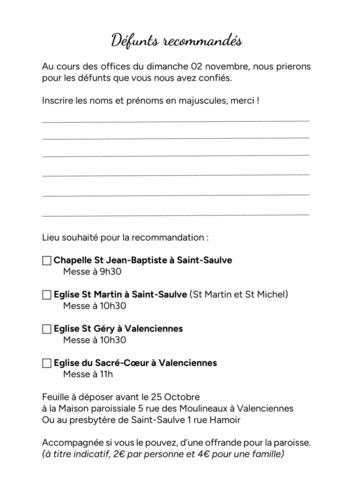 Pour recommander nos défunts des feuillets sont disponibles dans les églises et en téléchargement ci-desous